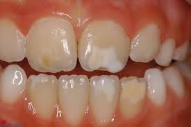 Συνήθως εκδηλώνεται με λευκές, κίτρινες ή καφέ κηλίδες στους τομείς και τους γομφίους, μπορεί όμως να επηρεάσει και άλλα δόντια. Η κλινική εικόνα μπορεί να περιορίζεται μόνο στην εμφάνιση αυτών των κηλίδων, ή να είναι πιο σοβαρή προκαλώντας απώλεια της αδαμαντίνης του δοντιού, με συνέπεια την εμφάνιση ευαισθησίας και πόνου καθώς και τερηδόνας.